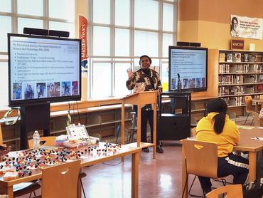 Amrita Madabushi, the founder of EmpowerBio, led the session, sharing her inspiring journey from biochemistry researcher to biotechnology educator. She facilitated a hands-on activity that involved building nucleotide models, demonstrating how atoms serve as the fundamental building blocks of DNA. This collaborative team exercise not only deepened students' understanding of molecular biology but also fostered teamwork and problem-solving skills.
